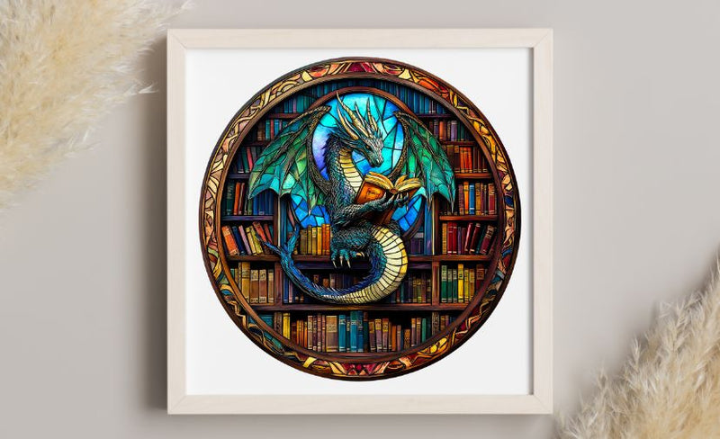 ステンドグラス・ドラゴン - 木製ジグソーパズル