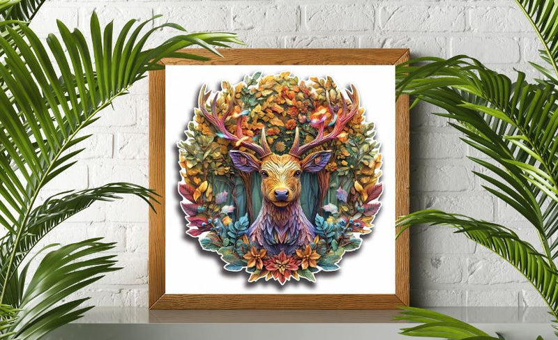 このパズルはとても綺麗に仕上がったので、額に入れることにしました!鮮やかな色彩とシカのデザインが際立っています。