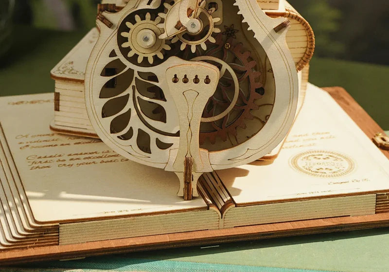 原木とヴィンテージ・ブラウンを組み合わせた本の土台には、チェロの父 ・カザルスの短い物語が書かれています。表紙にヨーロッパの繊細な模様が描かれた 3 冊の魔法の本は、神秘的でレトロな雰囲気を醸し出しています。