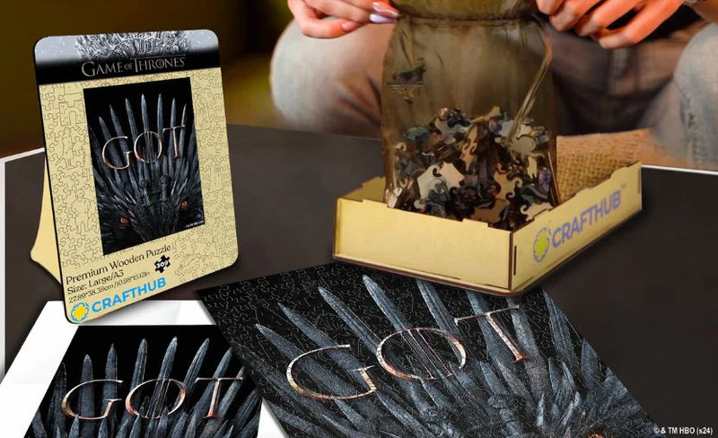 「ゲーム・オブ・スローンズ」シリーズの象徴的なシンボルを組み合わせながら、ウェスタロスの広大な風景を探検しよう。パズルのピース1つ1つが、この壮大な物語の複雑に絡みあう権力と関係を表しています。
