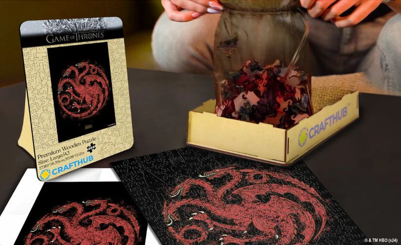 「ゲーム・オブ・スローンズ」シリーズの象徴的なシンボルを組み合わせながら、ウェスタロスの広大な風景を探検しよう。パズルのピース1つ1つが、この壮大な物語の複雑に絡みあう権力と関係を表しています。
