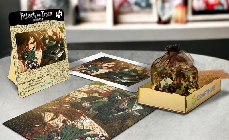 エレンやミカサ、そして通常種や奇行種を含む巨人たちを形取ったユニークなパズルピースで物語の中心へ飛び込もう!