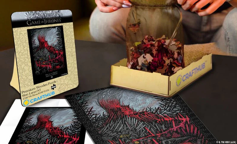 「ゲーム・オブ・スローンズ」シリーズの象徴的なシンボルを組み合わせながら、ウェスタロスの広大な風景を探検しよう。パズルのピース1つ1つが、この壮大な物語の複雑に絡みあう権力と関係を表しています。