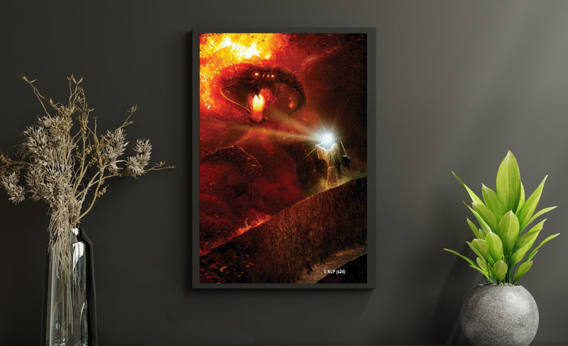 「我は神秘の火に仕える者、アノールの焔の使い手じゃ…貴様の放つ火は…わしには通じん!」 ドゥリンの橋でのガンダルフとバルログとの象徴的な戦いの場面です。