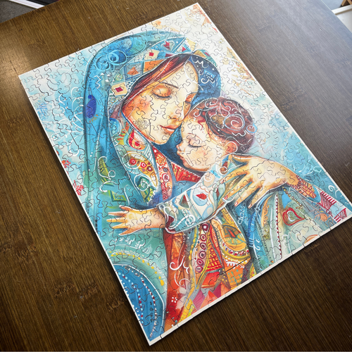 ピースを組み立てると、十字架、聖書、鳩など、キリスト教の信仰と献身のシンボルが現れます。