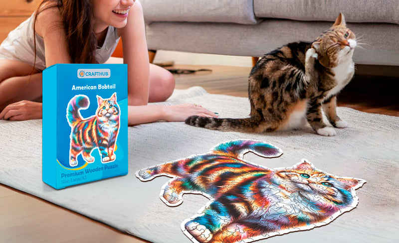 世界中から集められた50種類以上のユニークなネコの品種を紹介する木製ジグソーパズルで、お好きなネコの美しさを堪能してください。