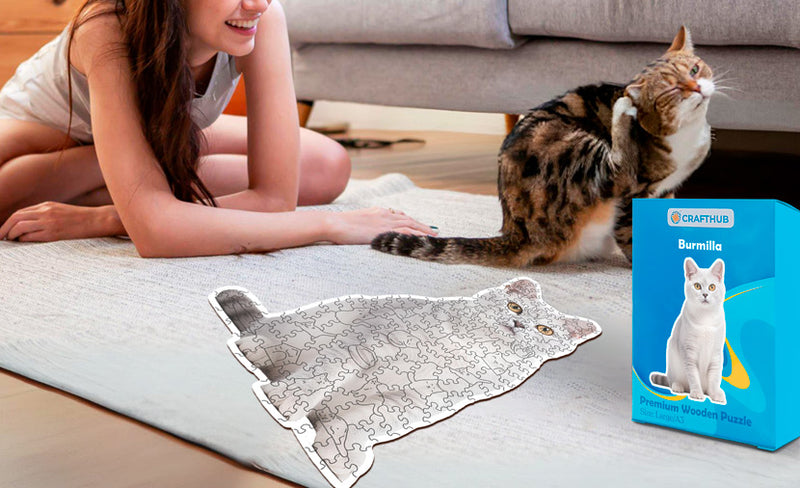 世界中から集められた50種類以上のユニークなネコの品種を紹介する木製ジグソーパズルで、お好きなネコの美しさを堪能してください。
