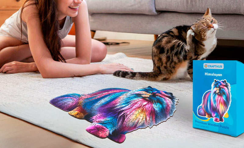 世界中から集められた50種類以上のユニークなネコの品種を紹介する木製ジグソーパズルで、お好きなネコの美しさを堪能してください。