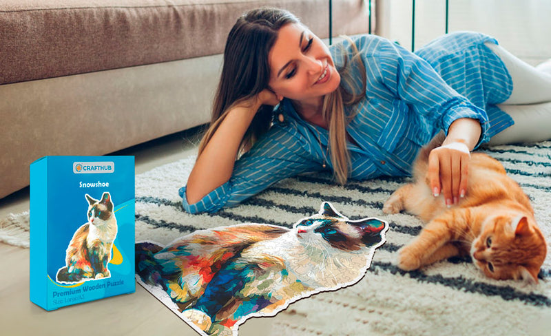 世界中から集められた50種類以上のユニークなネコの品種を紹介する木製ジグソーパズルで、お好きなネコの美しさを堪能してください。