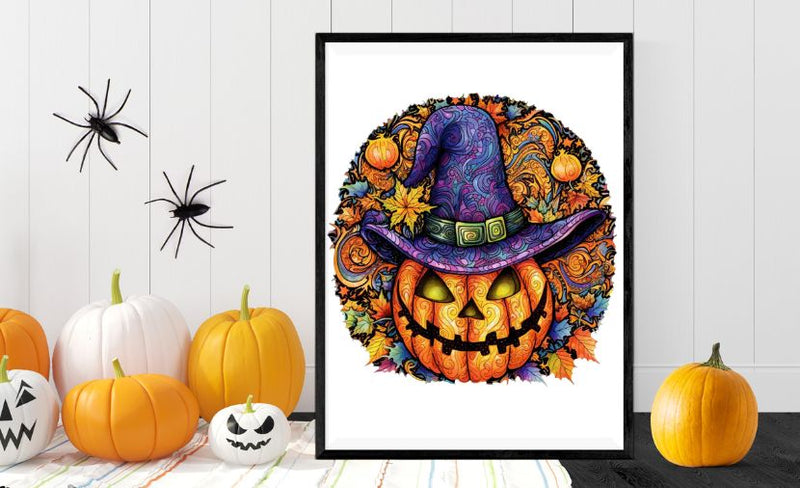 ハロウィンをテーマにしたこのパズルを組み立てると、おばけやカボチャ、墓石など、ユニークな形が次々と現れます。