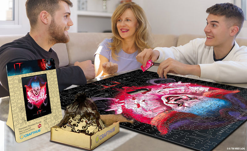 ピースをはめるごとに、不吉な赤い風船、デリーの不気味な下水道、そして子供たちの悪夢の象徴であるペニーワイズの邪悪な笑みが徐々に現れます。
