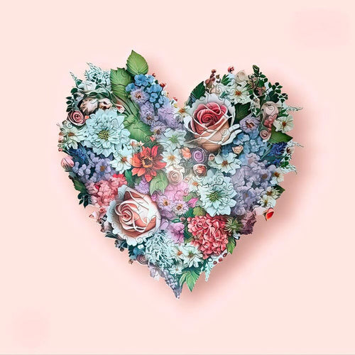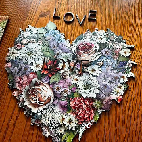 このパズルを組み立てながら、「L,O,V,E」の文字や優しいハートアイコン、咲き誇る花々など、愛を象徴するデザインを一つひとつ楽しめます。