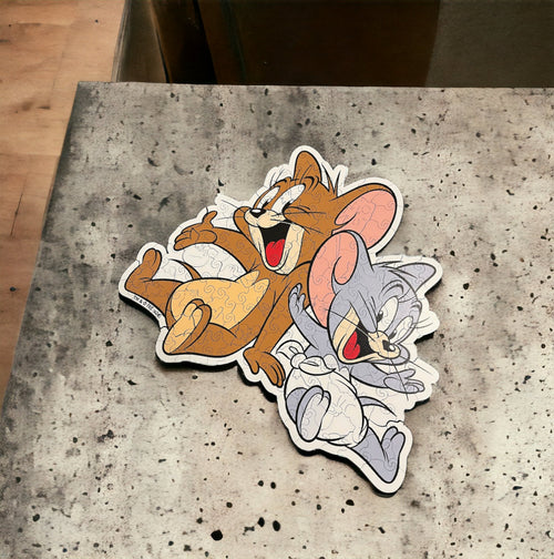 トムとジェリーのバトルの形をした特別なピースを使ったパズルです。ジェリーの素早い動きから、トムのワイルドな追いかけっこや隠れ方まで、それぞれのピースが楽しさを演出します。