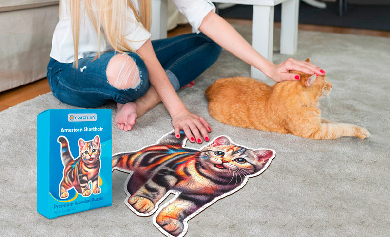 世界中から集められた50種類以上のユニークなネコの品種を紹介する木製ジグソーパズルで、お好きなネコの美しさを堪能してください。