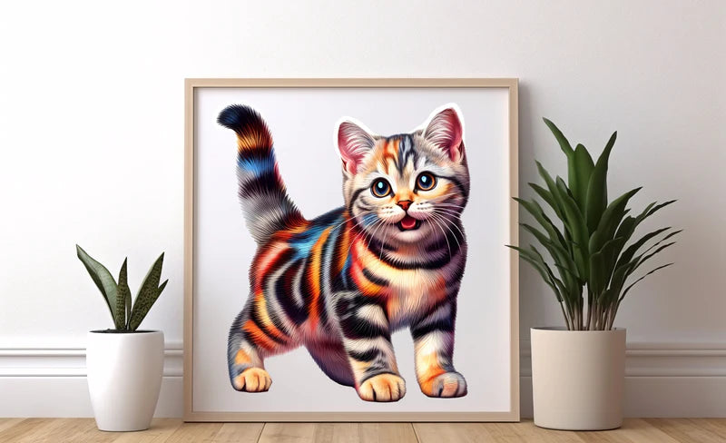 最新のUVプリント技術により、明るく鮮やかな猫のデザインを実現し、組み立てるとアート作品のようになります。