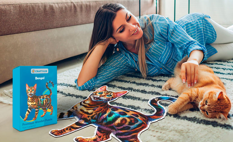 世界中から集められた50種類以上のユニークなネコの品種を紹介する木製ジグソーパズルで、お好きなネコの美しさを堪能してください。