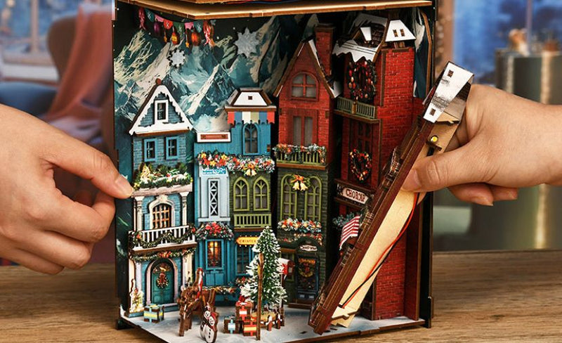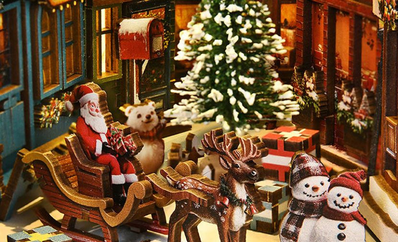 温かな黄金色の光と華やかな飾り付けに包まれたこのミニチュアストリートが、クリスマスの世界を再現します。きらめく窓明かりと楽しい雰囲気が、すみずみまで広がる冬の夜を演出します。