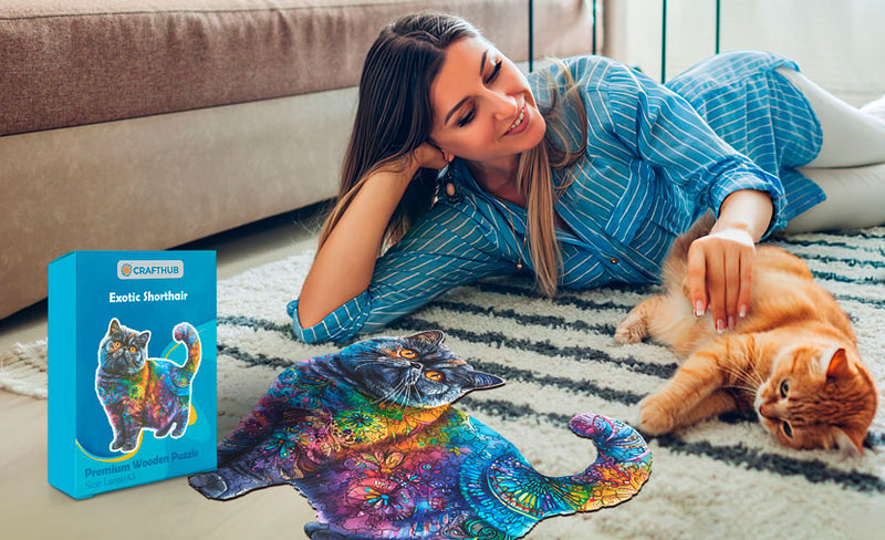 世界中から集められた50種類以上のユニークなネコの品種を紹介する木製ジグソーパズルで、お好きなネコの美しさを堪能してください。