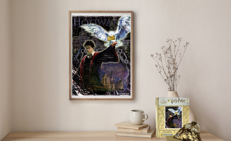 高度なUVプリント技術により、ハリーと白いふくろうを中心に細部まで美しい色彩で描かれています。完成すると素敵なアートディスプレイとなります。。