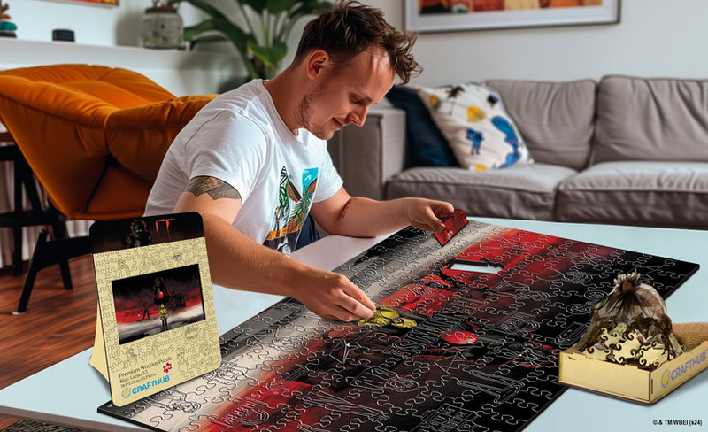 ピースをはめるごとに、不吉な赤い風船、デリーの不気味な下水道、そして子供たちの悪夢の象徴であるペニーワイズの邪悪な笑みが徐々に現れます。